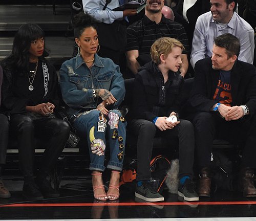 Во время перерыва Ri-Ri нашла минутку, чтобы поприветствовать Бейонсе Ноулз, Джей-Зи, бывшего президента Билла Клинтона, Бена Стиллера и Флойда Мэйуэзер-младшего, которые также пришли на игру, чтобы поболеть за своих фаворитов.