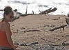 Джулия Роберт помогает своей дочери собирать ракушки на побережье острова Гавайи.
