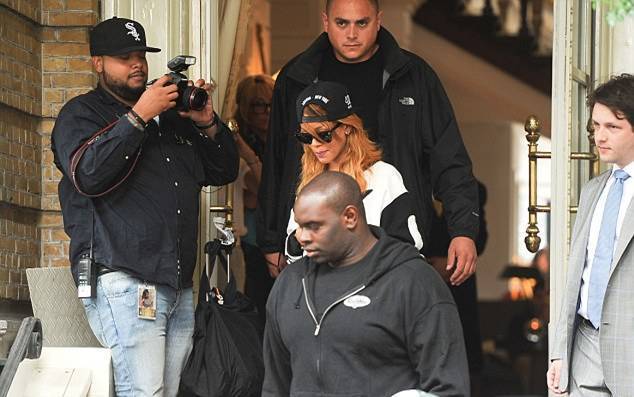 В воскресенье же певица была замечена, когда покидала отель, направляясь на свое выступление. Что интересно, ее окружение несло коробки с различным фаст фудом. Видимо во время концерта Рианна будет восполнять свои силы не совсем полезной пищей.