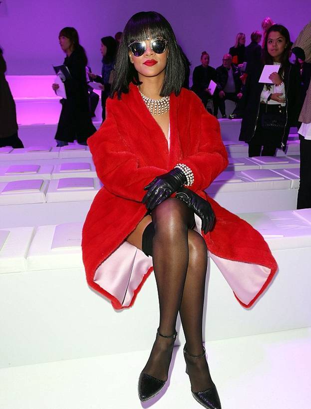 Рианна продолжает находиться в Париже. Пятницу она провела на показе Кристиана Диор, где показывали новую коллекцию осень/зима 2014-2015.