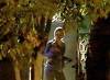 В спущенном платье по пояс с сигаретой в руках в окружении своей команды, которая помогала ей в организации бала