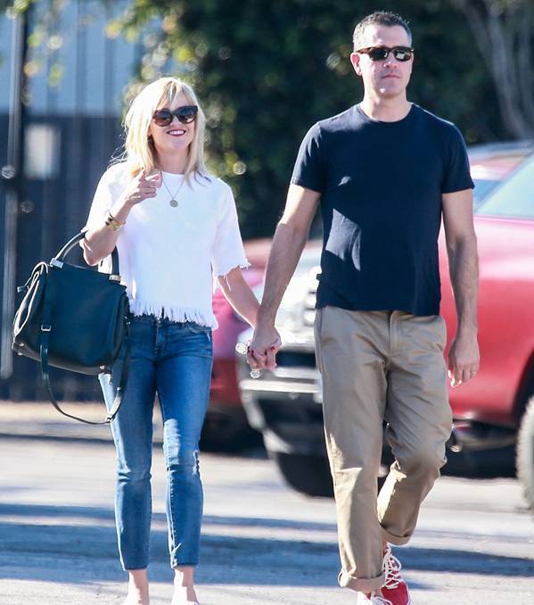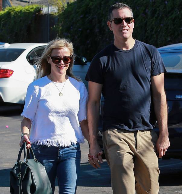 Субботним днем, 25 октября, Риз Уизерспун и ее супруг Джим Тот были замечены во время посещения одного из ресторанов Санта-Моники.