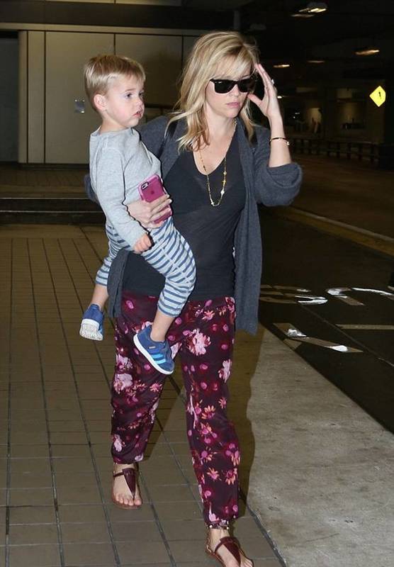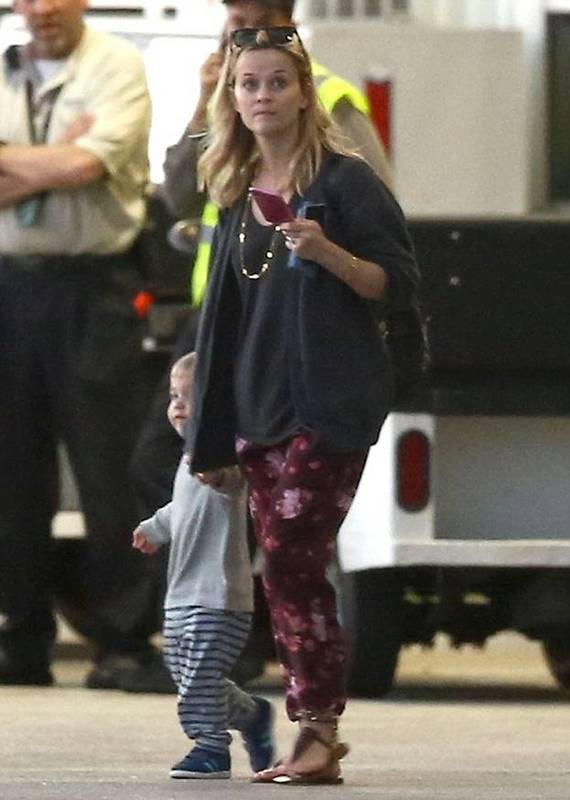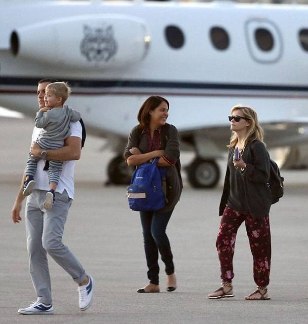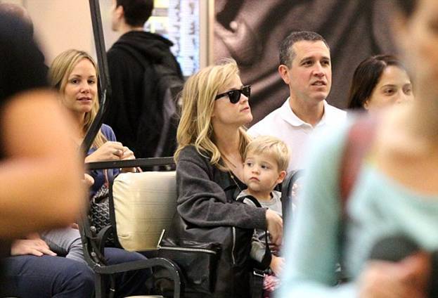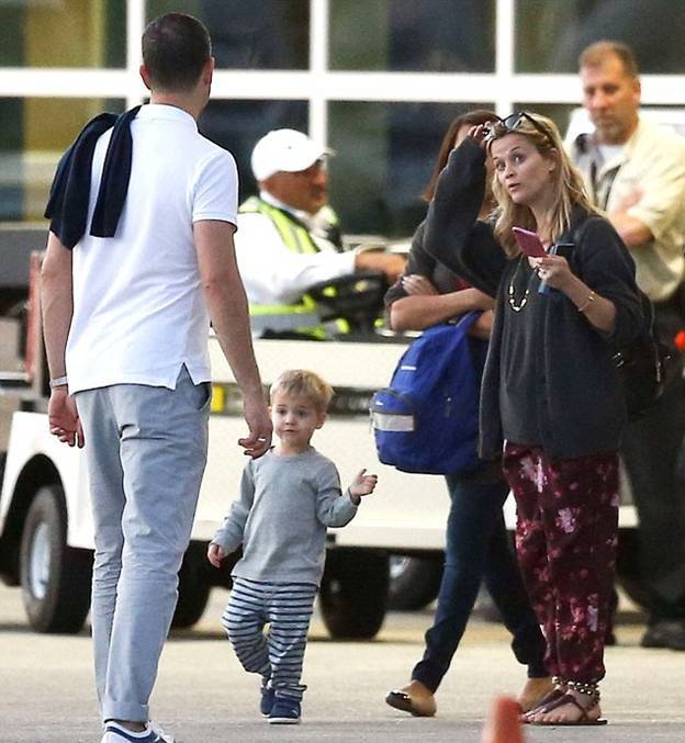 Риз Уизерспун с младшим сыном и мужем в аэропорту Майами