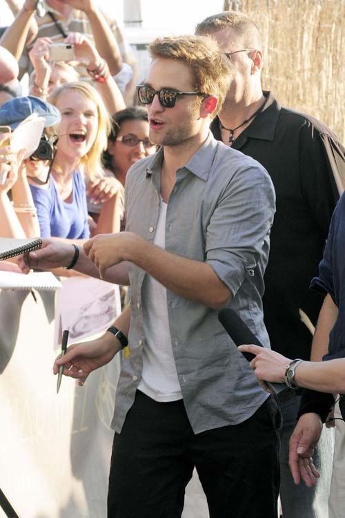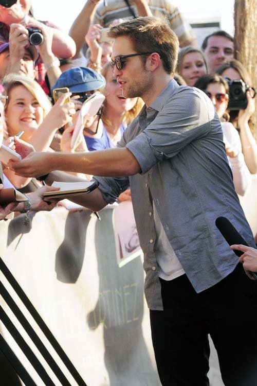 Молодая звезда Голливуда был в отличном настроении, и с удовольствием общался со своими фанатами. В фильме режиссера Дэвида Кроненберга, 26-летний Паттинсон играет молодого миллиардера Эрика Пэкера, который едет через Манхэттен в парикмахерскую. Во время этого путешествия вся жизнь Эрика рассыпается на части.