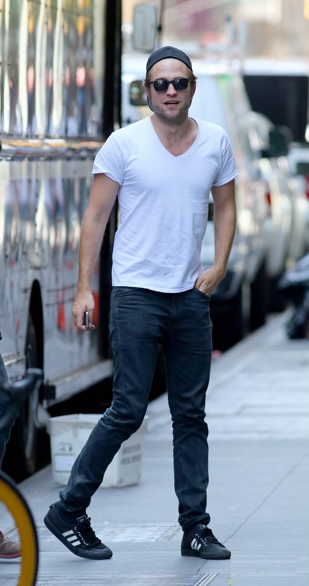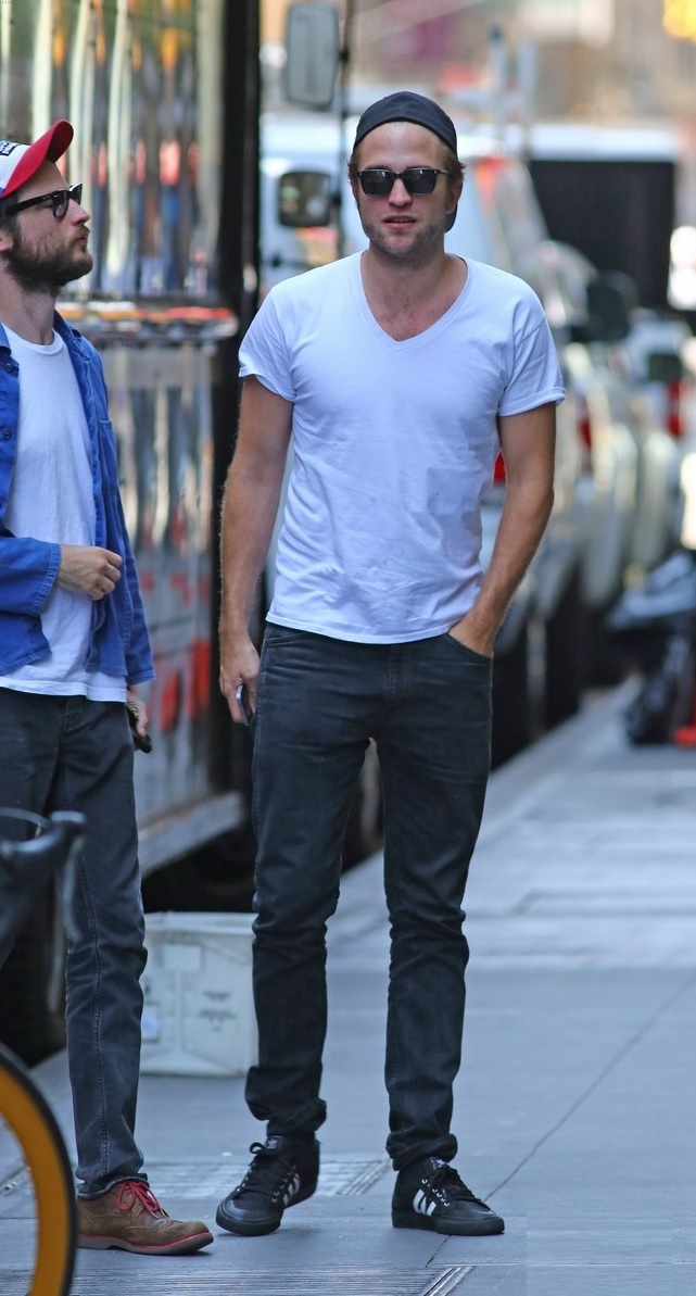 Роберт Паттинсон провел первый день рабочей недели, общаясь со своим другом в понедельник днем, 25 августа, в Нью-Йорке.