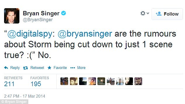 Это очень расстраивало поклонников франшизы, особенно, как ранее стало известно, что сцены с Анной Пакуин вообще были вырезаны из фильма. Однако, как оказалось, эти слухи не соответствуют действительности, и Холли в роли Шторм будет представлена во всем снятом объеме. Об этом в понедельник через свой твиттер заявил режиссер картины Брайан Сингер.