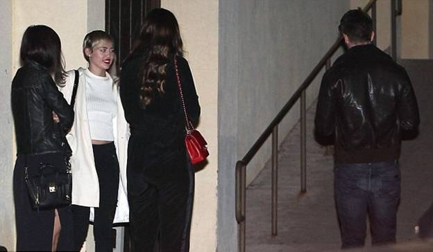 Майли, Кэтрин, Мария и Патрик ждут свои машины, чтобы направится праздновать премьеру