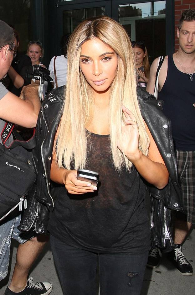 В среду Ким Кардашян разместила свои фотографии в сети, где продемонстрировала свой новый цвет волос. На них она находится в известной парикмахерской Сержа Нормана и выглядит блондинкой.