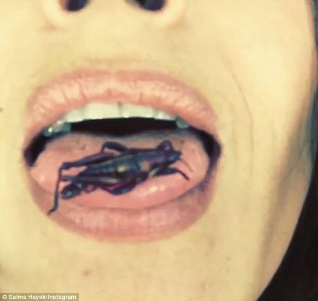 Во вторник она показала свои необычные пристрастия в еде. 48-летняя звезда выложила в сеть 15-секундный видеоролик, в котором ест сверчка. В нем крупным планом показано, как она кладет насекомое на язык, а потом с удовольствием им хрустит, тщательно пережевывая, при этом говоря: "Это сверчки из Мексике, из Оахаки, их едят...".