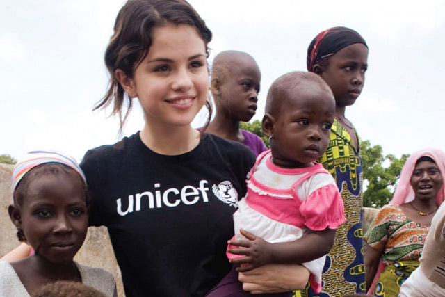 1. Селена Гомес (21 год) - американская актриса кино, телевидения и озвучивания, певица, композитор, автор песен, выпустила новую коллекцию одежды. Но не смотря на активную бизнес деятельность, Селена успешно занимается благотворительностью. Она является послом доброй воли ЮНИСЕФ, став в 2009 году самым юным членом фонда за всю его историю. Более того в начале февраля на официальном аккаунте организации ЮНИСЕФ в социальной сети Твиттер появилась следующая запись:«Считаем нужным лично и отдельно поблагодарить Селену Гомес за ее вклад в деятельность нашей благотворительной организации.»