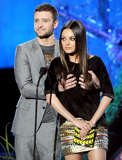 7. Джастин Тимберлейк на церемонии Movie Awards 2011 обнял своего партнера по фильму "Секс по дружбе" (Friends with Benefits) Милу Кунис. "Мы никогда не встречались," - сказал Джей Ти на сцене с Кунис. "У нас совершенно платонические отношения и именно поэтому я могу сделать это," – признался поп-звезда, держа при этом руки на груди Кунис . В свою очередь, актриса обхватила его гениталии.