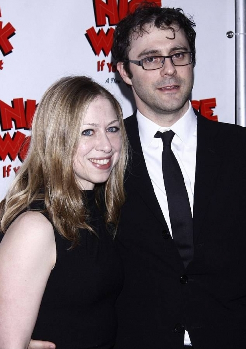 и дочь бывшего президента Америке Билла Клинтона Челси Клинтон со своим мужем Марком Мезвински.