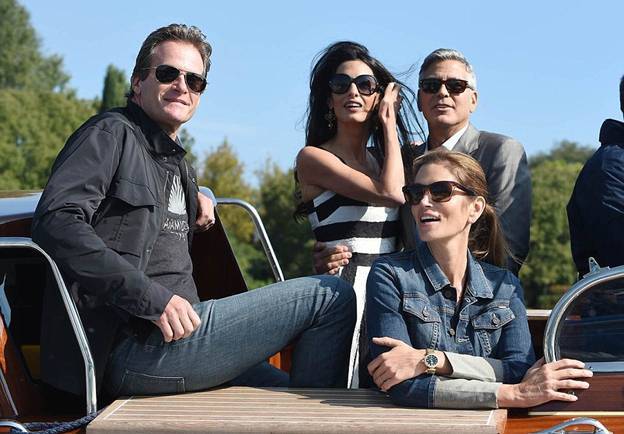 Пара встречает своих именитых гостей. В пятницу они целый день курсировали по каналам города вместе с ними. Одним из первых в город прилетели Синди Кроуфорд со своим супругом Ренде Гербером, что и не удивительно, ведь именно он будет шафером Джорджа.