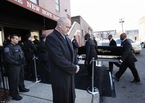Сегодня мир простился с великой певицойУитни Хьюстон. Вся семья, друзья и некоторые из самых больших имен в мире музыке собрались в родном городе Уитни Ньюарке. На службе были замечены Кевин Костнер, Стиви Уандер, Алисия Кис, Джордан Спаркс, Роберта Флэк и Дженнифер Хадсон.