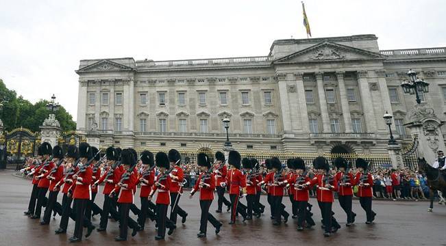 Сегодня возле Букингемского дворца гвардейцы королевы маршировали под праздничную музыку