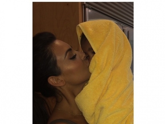 Ким Кардашян и Норд Уэст. "Наша девочка закончила первую неделю по урокам плавания сегодня. Она сделала свои первый шаги, когда вышла из бассейна. Мама и папа так гордятся тобой."