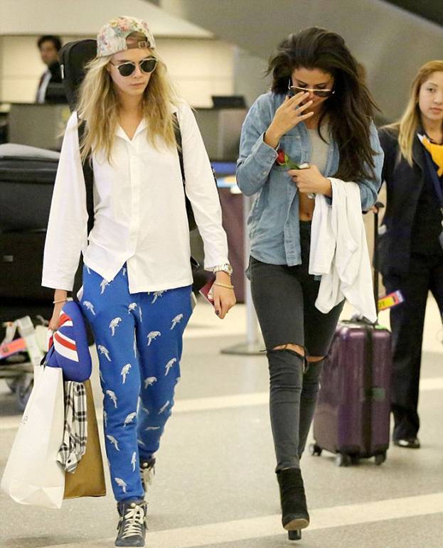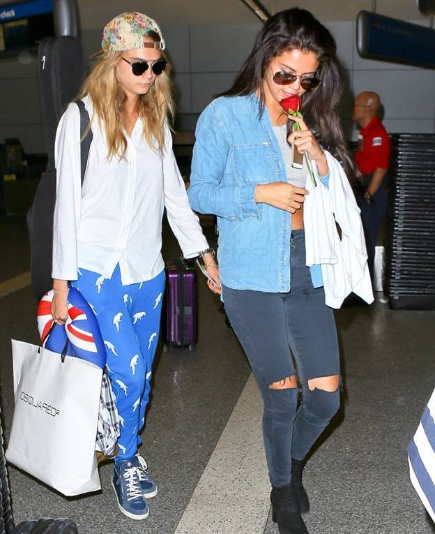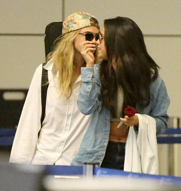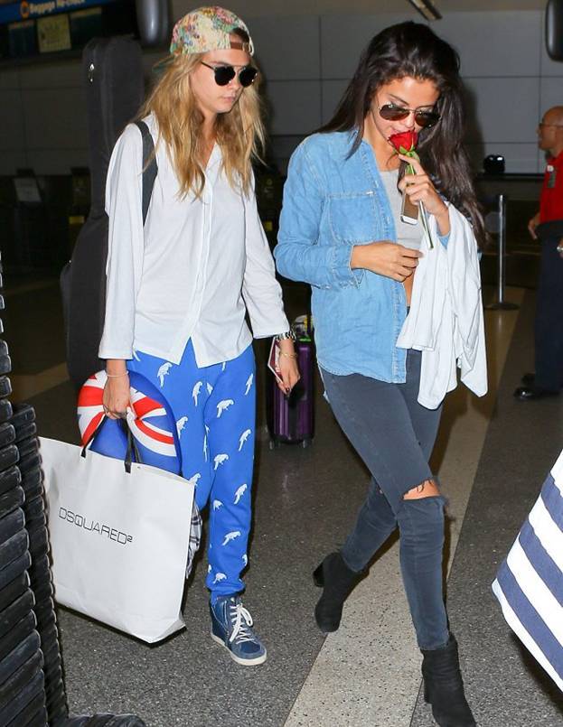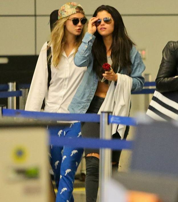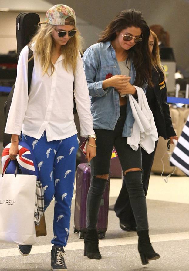 Между тем актриса и певца прилетела в Лос-Анджелес ни одна, а в сопровождении Кары Делевинь, которая ей составляла компанию на отдыхе в Сен-Тропе.