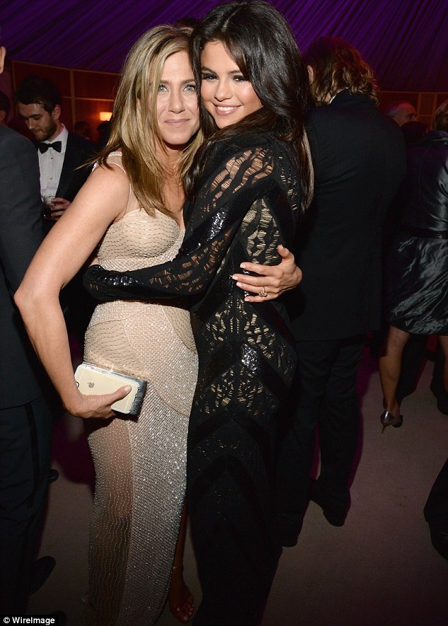 Селена на вечеринке с Дженнифер Энистон, на заднем плане можно заметить диджея Зедда