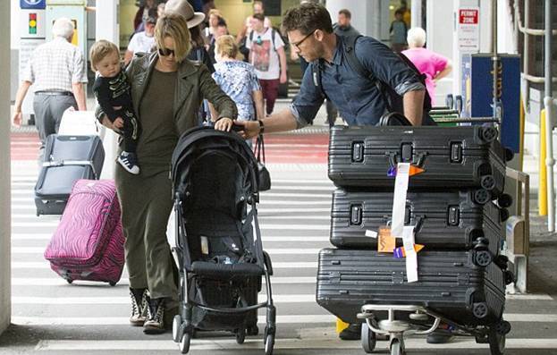 Сэм Уортингтон, Лара Бингл и их сын прилетели домой