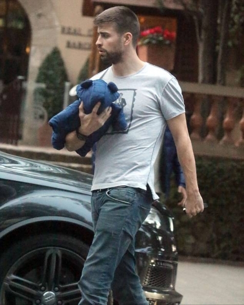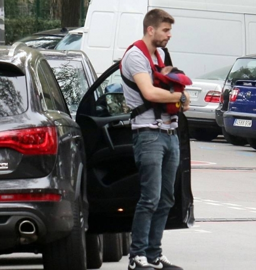 В то время, как Шакира несла дамскую сумку, 26-летний футболист нес своего сына, который был чуть больше ладони.