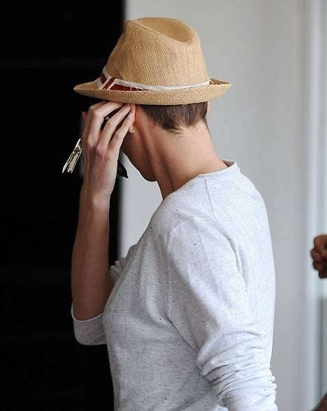 Похоже, что Шарлиз Терон комплексует насчет своей новой стрижки, потому что ходит постоянно закрывая свою голову, то шапкой, то шляпой. Вот и в четверг, 36-летнию актрису заметили в очередной фетровой шляпе.