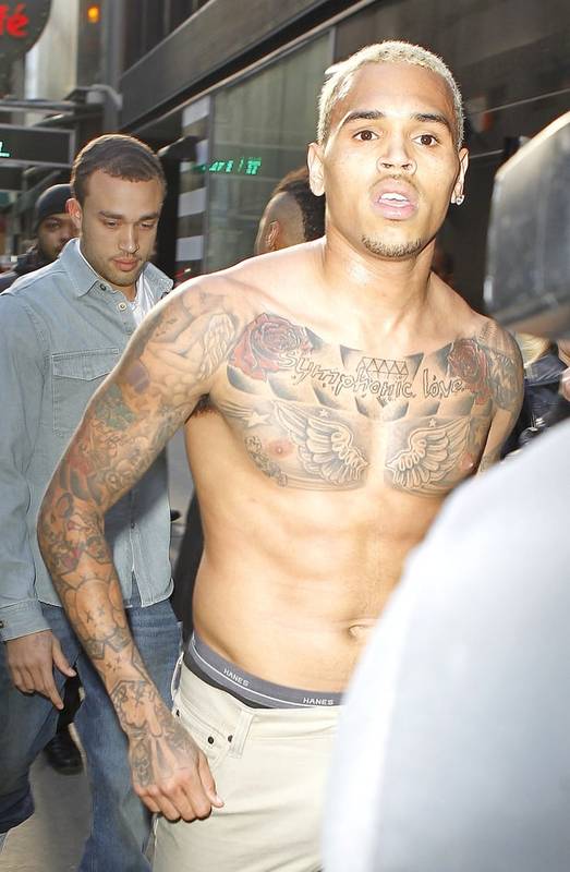 Крис Браун. В марте 2011 года устроил безобразную сцену во время интервью в программе "Доброе утро Америка". Когда ее ведущий Робин Робертс спросил его о нападении в 2009 году на Рианну, он сорвал с себя рубашку и, схватив стул, бросил его в окно студии.
