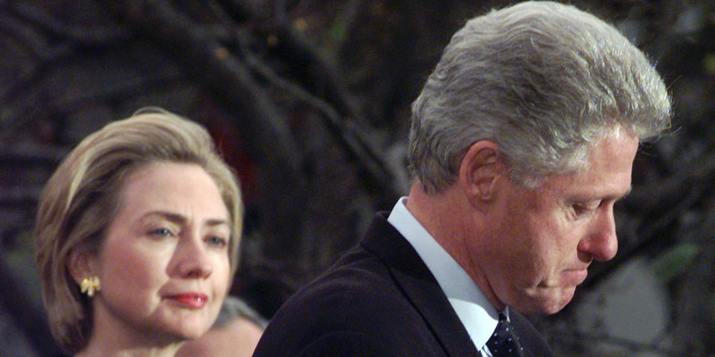 Билл Клинтон и Моника Левински. Этот сексуальный скандал прогремел на весь мир, президент США изменял своей супруге Хилари со стажеркой Белого Дома. По словам самой Моники, она имела сексуальную связь с президентом с 1995 года по 1997. Сам Клинтон это отрицал. Так как здесь была замешена большая политика, брак президента не распался.