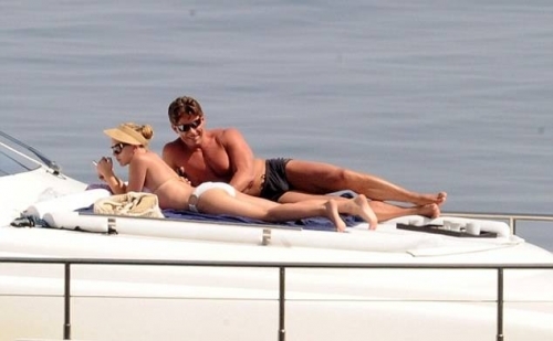 Парочка лежала довольно близко друг от друга на палубе, и можно только догадываться какая опасность грозила Скарлетт на яхте, что ее охранник не отходил от нее ни на шаг.