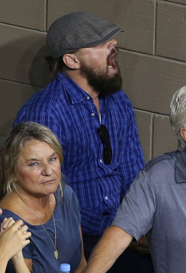 В четверг Леонардо Ди Каприо со своей матерью Ирмелин посетил четвертьфинал теннисного турнира US Open, который в эти дни проходит в Нью-Йорке. Судя по скучающему виду актера, матч его не впечатлил.