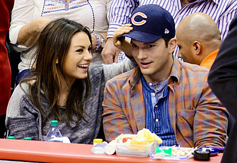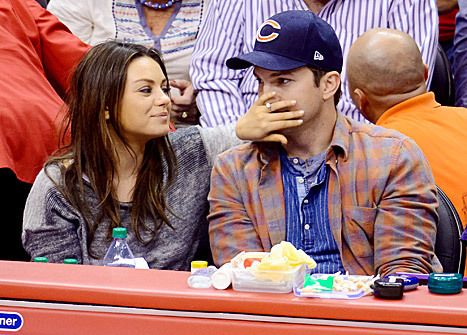 Сладкое видео: поцелуй беременной Милы Кунис и Эштона Катчера на камеру во время баскетбольного матча