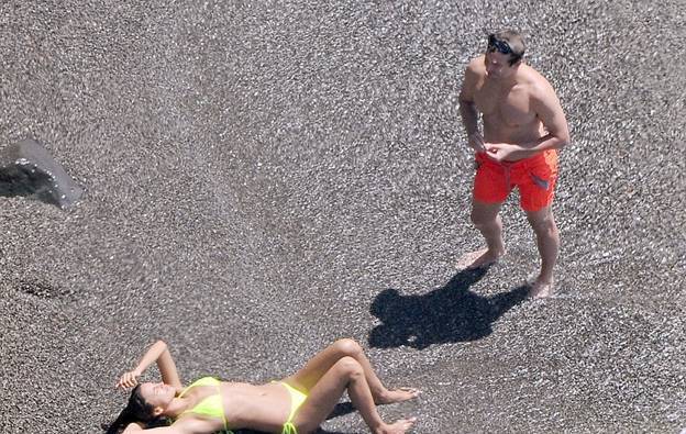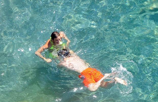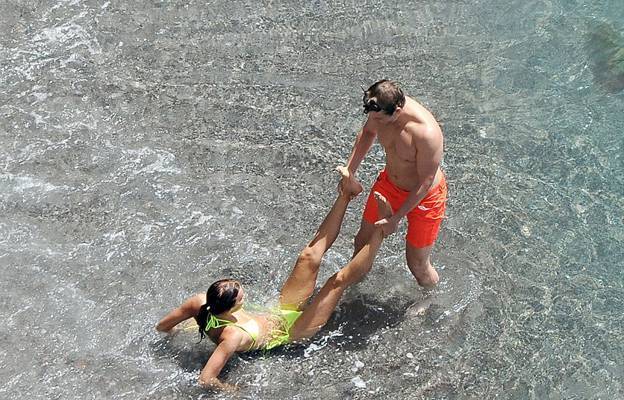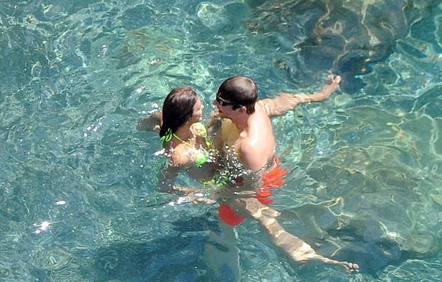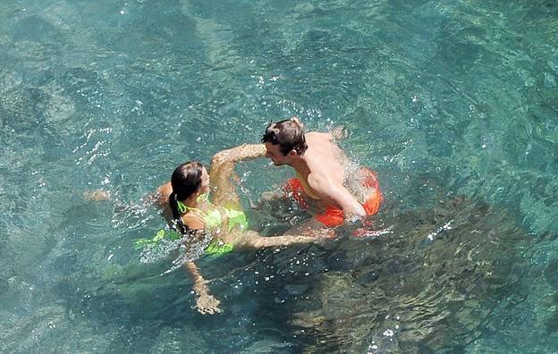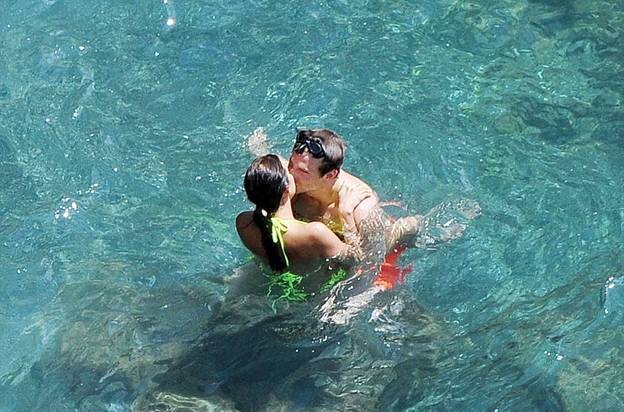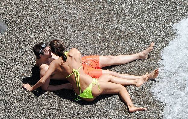 В четверг пара была замечена на одном из пляжей курорта. И как ранее, она вовсю целовалась,