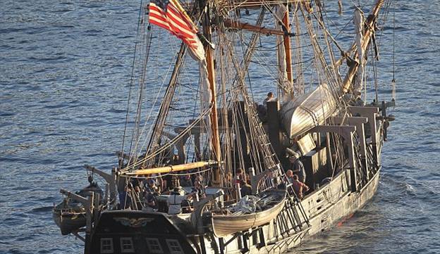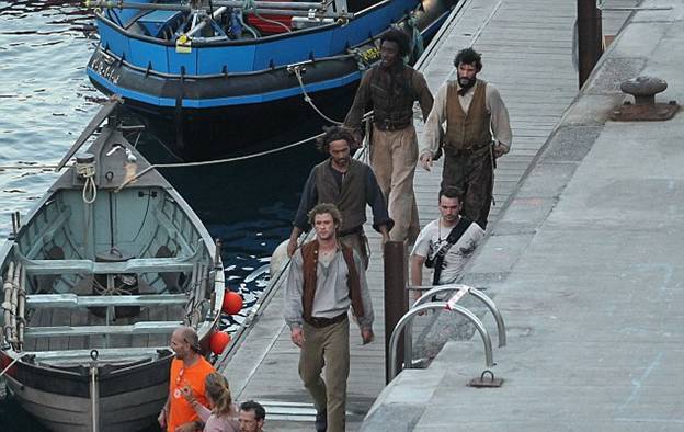 34-летний актер, немного похудевший и уставший, участвовал в эпизодах, когда по сюжету китобойный корабль, на котором плавает его герой, терпит крушение.