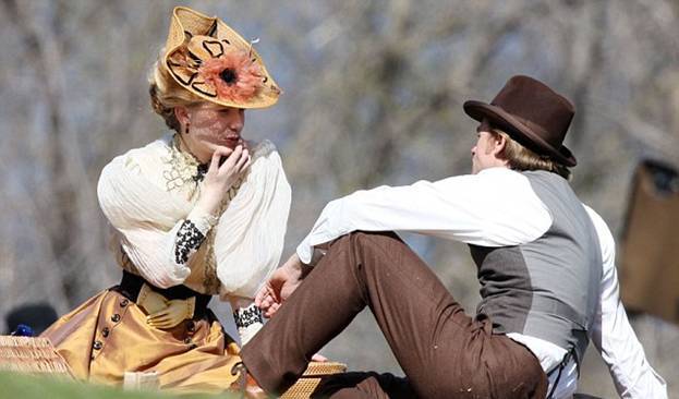 Во вторник на съемочной площадке мистического фильма "Багровый пик" были замечены Миа Васиковски, Чарли Ханнэм, Джессика Честейн и Том Хиддлстон. Съемка фильма, режиссер которого известный испанец Гильермо дель Торо, проходит в Канаде.