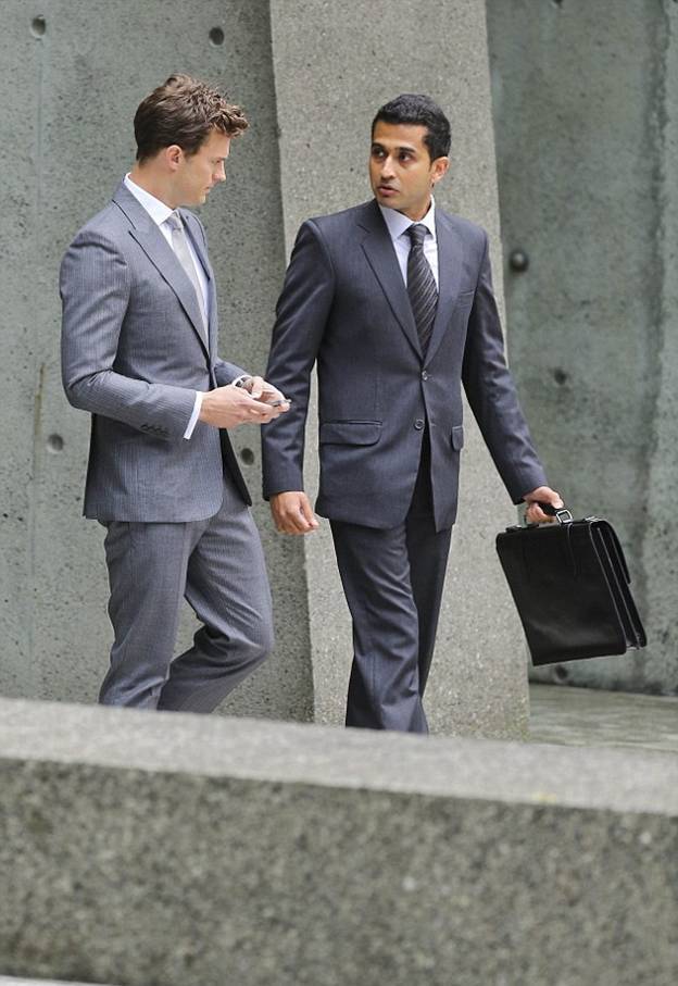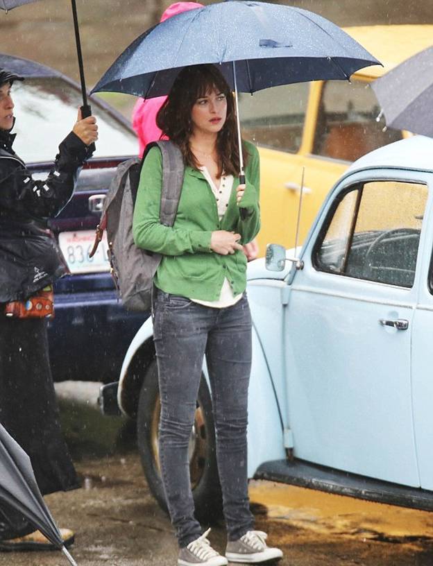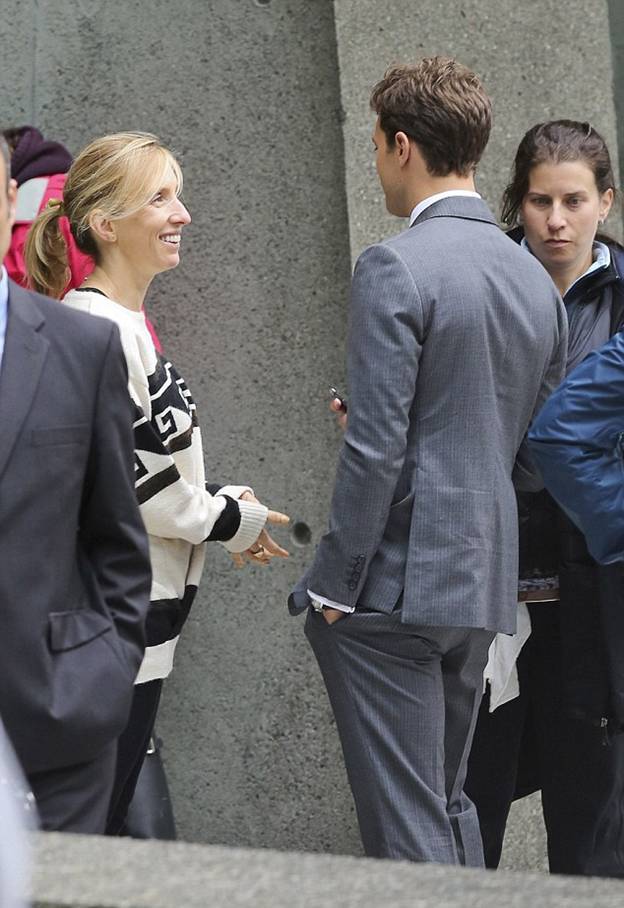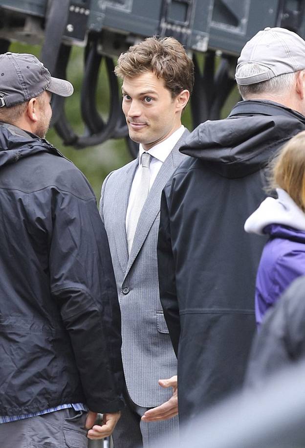 Однако в понедельник Джейми Дорнан снова появился на улицах Ванкувера в образе молодого миллиардера Кристиана Грея. А чуть позже на съемочной площадке была замечена и Дакота Джонсон, которая играет студентку Анастейшен Стил.