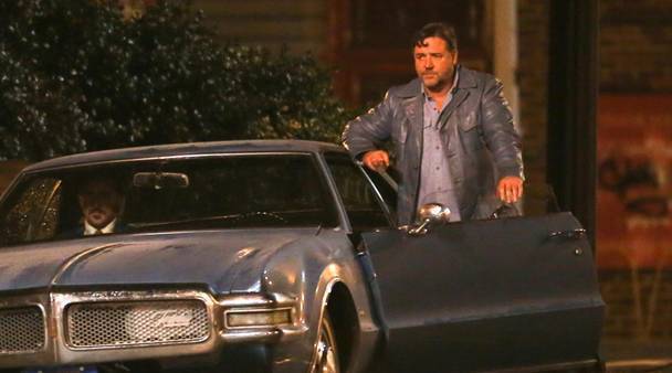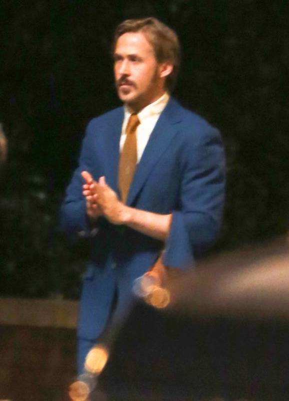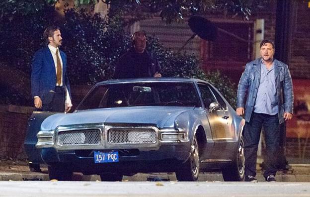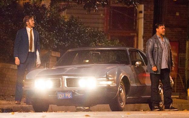 Снимается кино: Райан Гослинг и Рассел Кроу на съемочной площадке фильма "Славные парни"