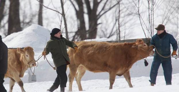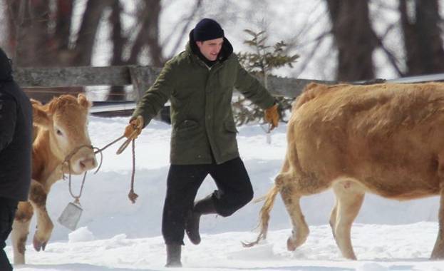 Актер был замечен в пригороде Торонто, где сейчас идет съемка его нового фильма "Жизнь". Во вторник он снимал сцены с коровами, которых пытался завести в сарай. Судя по выражению лица, Робу это нравилось, коровам не очень.