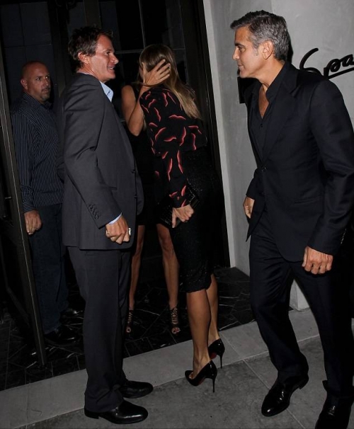 Вместе с ними присутствовали и их половинки, супруг Синди — ресторатор Рэнди Гербер и девушка Джорджа — Стейси Кейблер. Судя по всему, пары превосходно провели ужин. Они долго прощались после ужина, прежде чем разойтись по своим автомобилям.