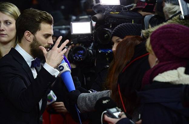 В среду вечером в рамках Берлинского кинофестиваля состоялась премьера фильма "Пятьдесят оттенков серого", которую назвали его официальным скринингом. Фильм представляли исполнители главных ролей Дакота Джонсон и Джейми Дорнан, а также режиссер картины Сэм Тейлор-Джонсон и автор одноименного романа, по которому был снят фильм, Э.Л. Джеймс.