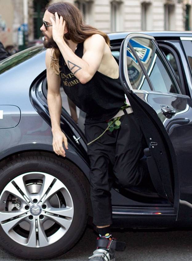 Джаред Лето известен тем, что имеет своеобразный стиль в одежде. И в среду актер и музыкант не разочаровал своих поклонников, появившись с занятным аксессуаром.