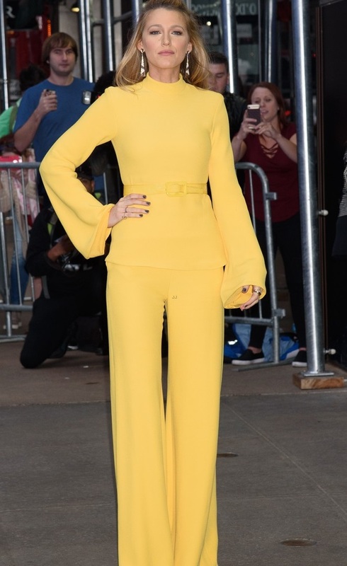 Утром Блейк отправилась на съемки программы "Доброе утро, Америка" (Good Morning America) в стильном желтом костюме от Brandon Maxwell.