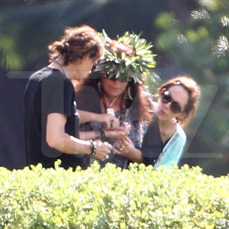 Стивен Тайлер недавно купил новый дом в Мауи, Гавайи, и пригласил местного священника, чтобы освятить его. На фотографиях, Тайлер и его невеста Эрин Брэди вчера, принимали участие в церемонии с женщиной… которая, является местным священником.