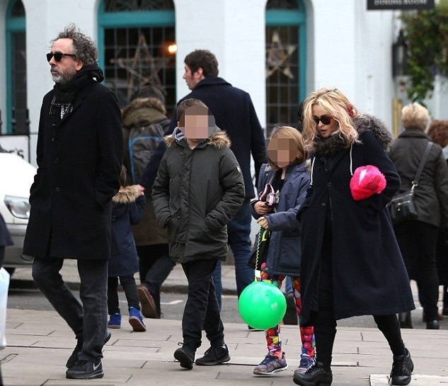 Хелена Бонем Картер и Тим Бертон отправились на прогулку с детьми. Экс-супруги остались в хороших отношениях и часто проводят время вместе.