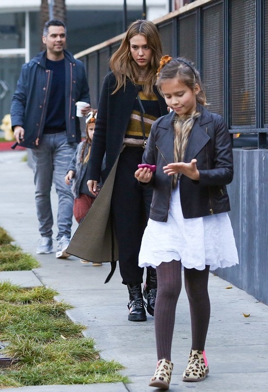 Джессику Альбу запечатлели на прогулке c семьей в Западном Голливуде.