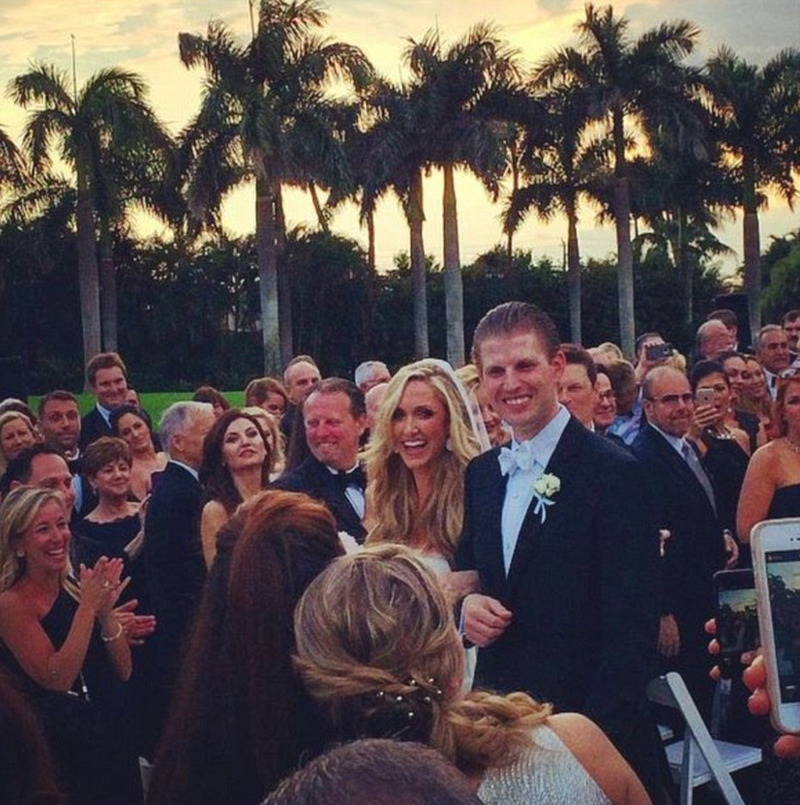 30-летний жених, основатель именного Фонда (Eric Trump Foundation), который выступает в качестве исполнительного вице-президента по развитию и поглощениям для Trump Organization, женился на 32-летнем продюсере одного из американских телеканалов Ларе Юнаске, в Палм-Бич, штат Флорида, в субботу.