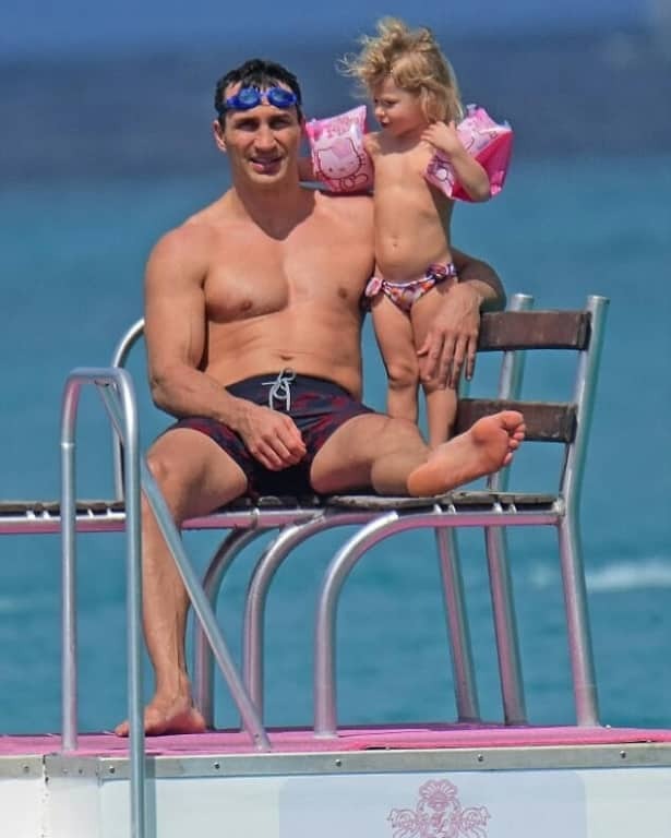 Общественность признала, что 41-летний боксер находится в потрясающей физической форме, однако многих смутило, как Кличко нес свою 3-летнюю малышку. Конечно же, нашлись и те, кто отшутился, мол, именно так суровые папы носят дочерей.