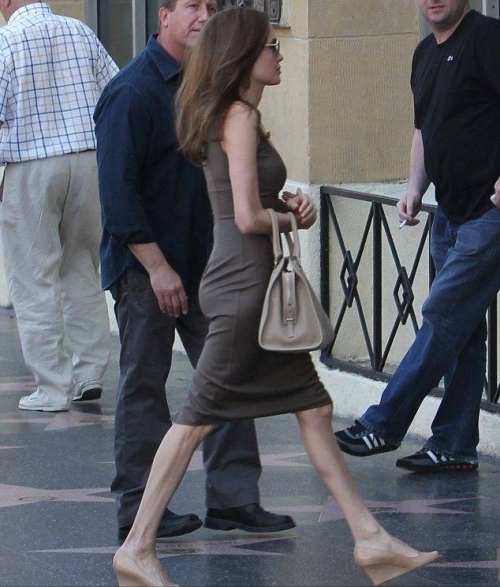 Так, 38-летняя Джоли была замечена в Лос-Аннджелесе, когда она шла на деловую встречу. Актриса выглядела элегантно и изыскано в приталенном платье с сумочкой YSL из украшений на ней было лишь это кольцо.