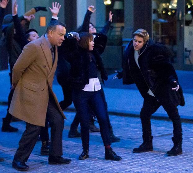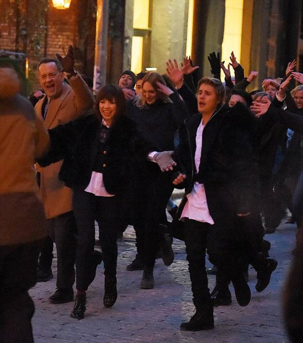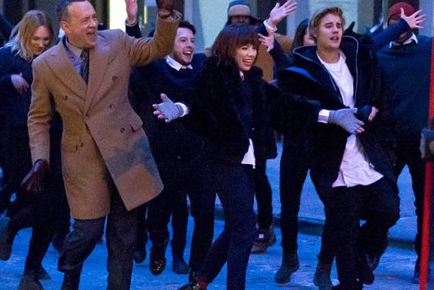 В понедельник в центре Нью-Йорка можно было заметить толпу танцующих людей, в первых рядах которой были Том Хэнкс, Джастин Бибер и Карли Рей Джепсен.