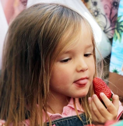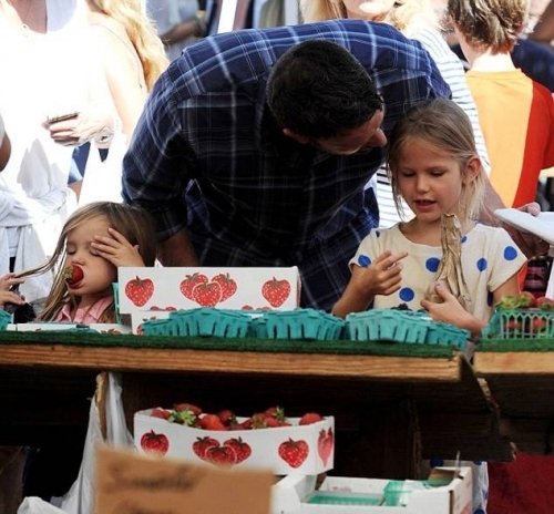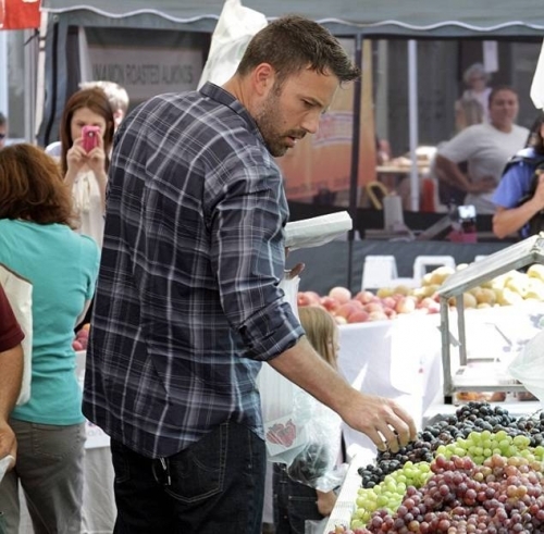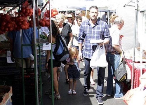 После троица направилась наконец за овощами, но и здесь дочерей актера больше заинтересовала клубника и виноград, а не лук с капустой, куда стремился Бен.