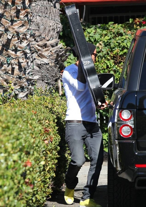 Пока Виктория Бекхэм с дочерью в Лондоне, Дэвид занимается сыновьями. Во вторник его заметили в Лос-Анджелесе, когда он забирал старшего сына из класса игры на гитаре.