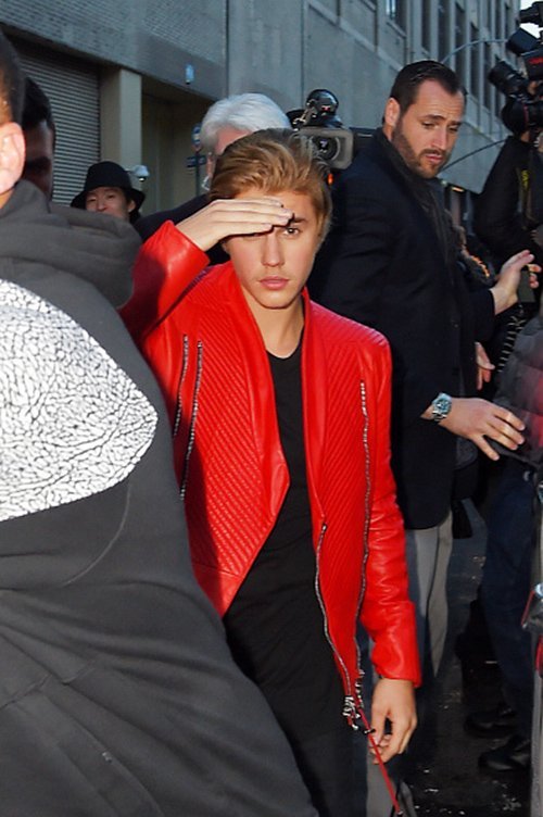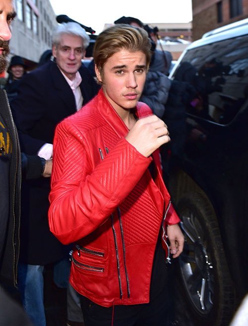 Джастин выглядел великолепно с новой длинной стрижкой зачесанной назад, а также будучи в красной кожаной куртке в стиле Майкла Джексона «Thriller».
